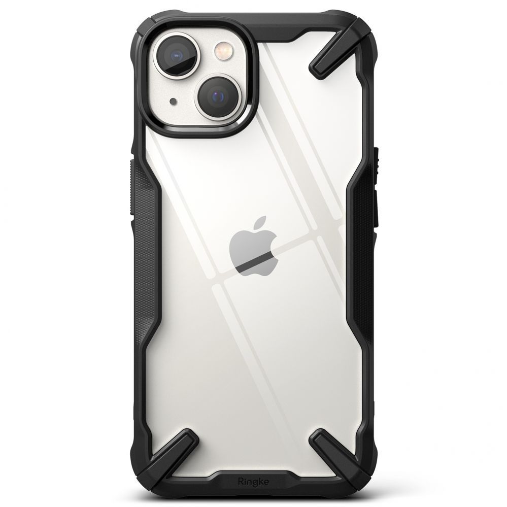 - A hybrid case with a rigid back and a flexible, reinforced frame .