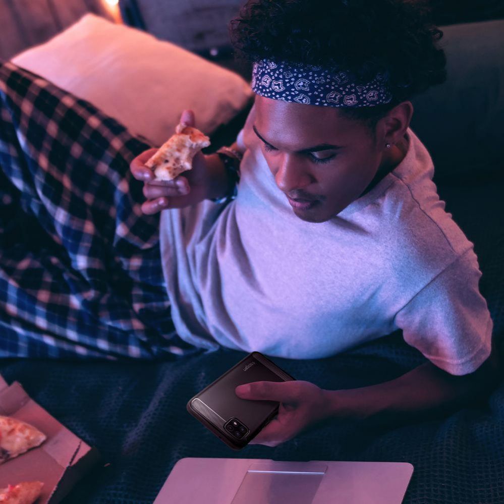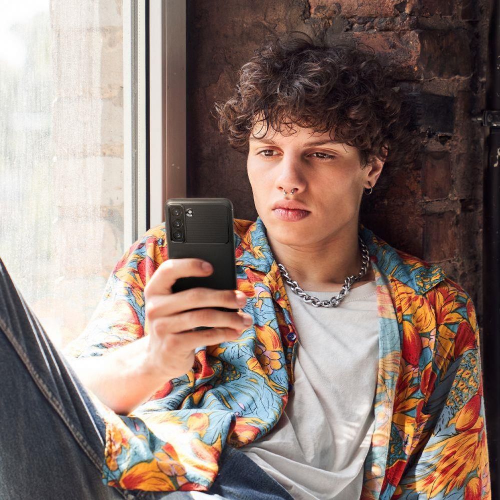 Relatively thin protective case. Made of durable and flexible TPU material resistant to abrasion. Rugged Armor is covered with shiny carbon fiber, which creates an elegant carbon texture. The product is perfectly fitted, fully functional, does not restrict access to external ports and effectively protects the device from scratches or falls. Rugged Armor tempts with its modern design!