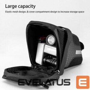 - It has a large capacity . One large 1.5 liter compartment allows you to conveniently store all your essential accessories, from bicycle tools to personal items.