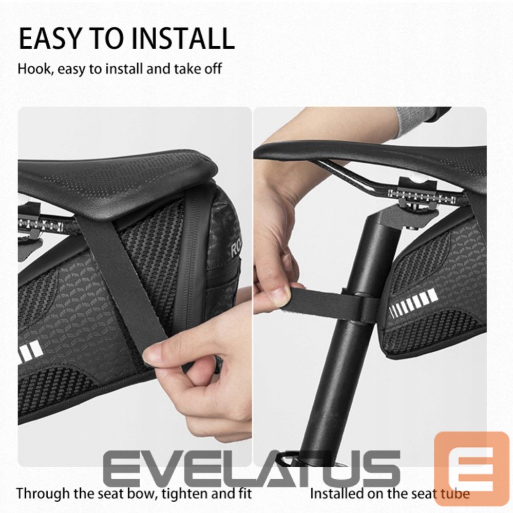 - Installation is extremely simple . Convenient Velcro fasteners allow you to quickly and easily attach the bag under the saddle, without the need for tools.