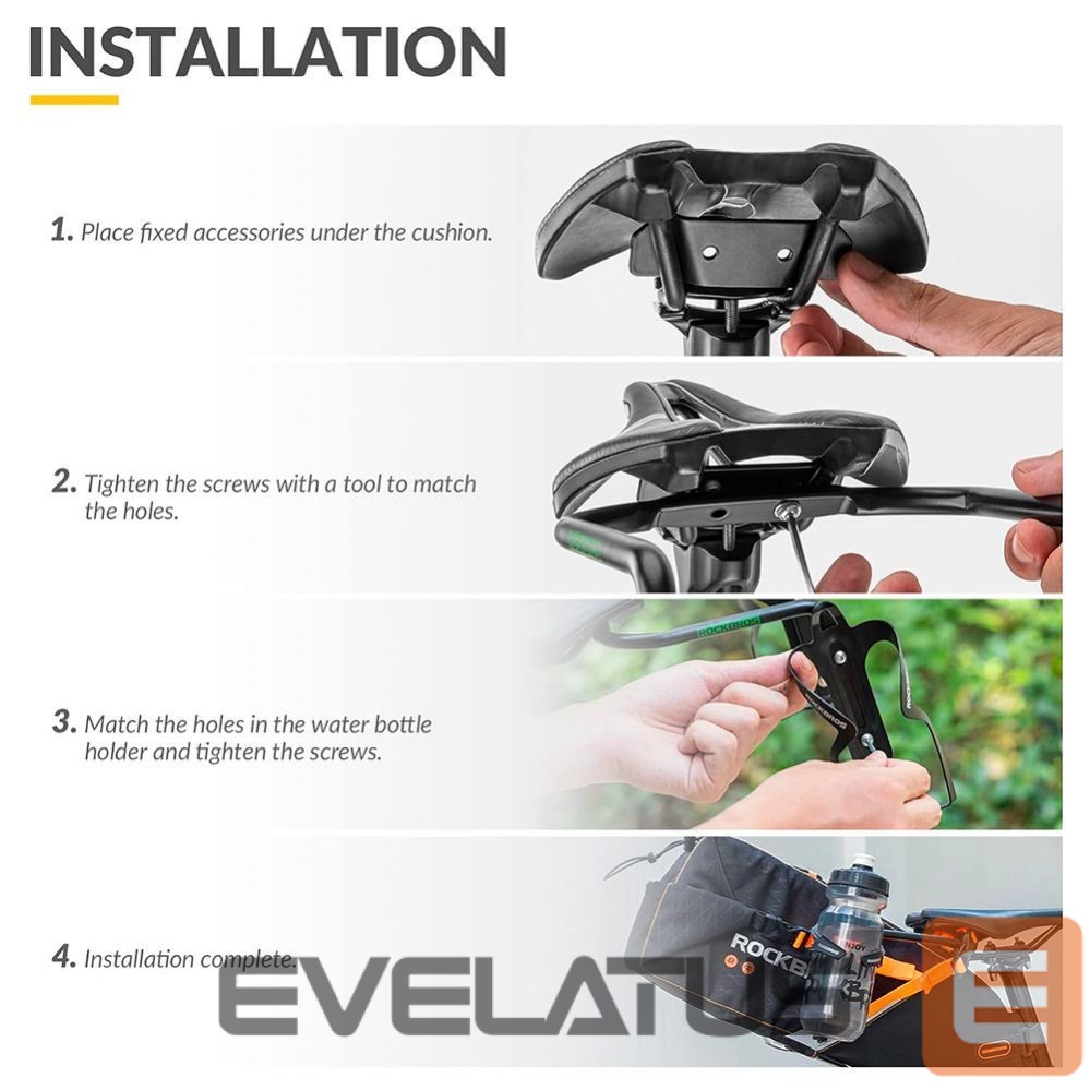 Forget about compromises when traveling by bike thanks to the Rockbros 31210013001 multi-functional holder. This is an indispensable tool for every cyclist, which allows you to attach two bottle holders and a bicycle bag. With its help, you can easily fit everything you need without sacrificing comfort and lightness.