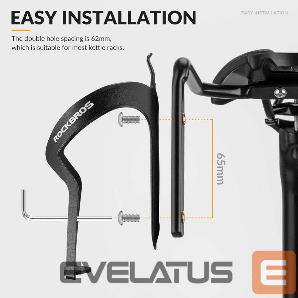 - It allows you to attach up to two water bottle holders . The screw spacing at the water bottle mounting point is 65 mm, which makes the gadget compatible with most water bottle holders on the market.