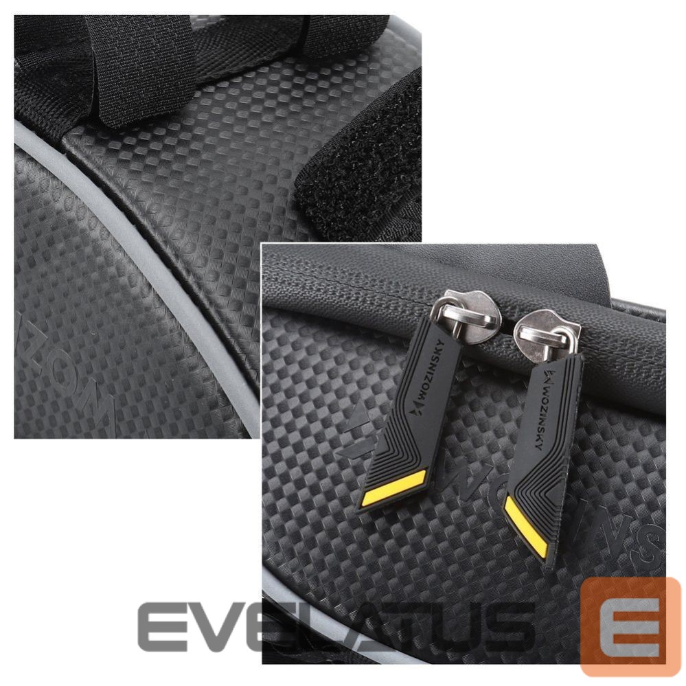 A phone case with a transparent protective film isn't the only detail worthy of attention. A sturdy zipper with two sliders , firmly attached Velcro straps that don't come loose when tugged, and an easy-to-clean texture – these are just some of the advantages of the Wozinsky WBB16BK bike bag. Its striking design makes it a perfect fit for city, mountain, and road bikes – for both men and women. It will be appreciated by both amateur and professional cyclists .