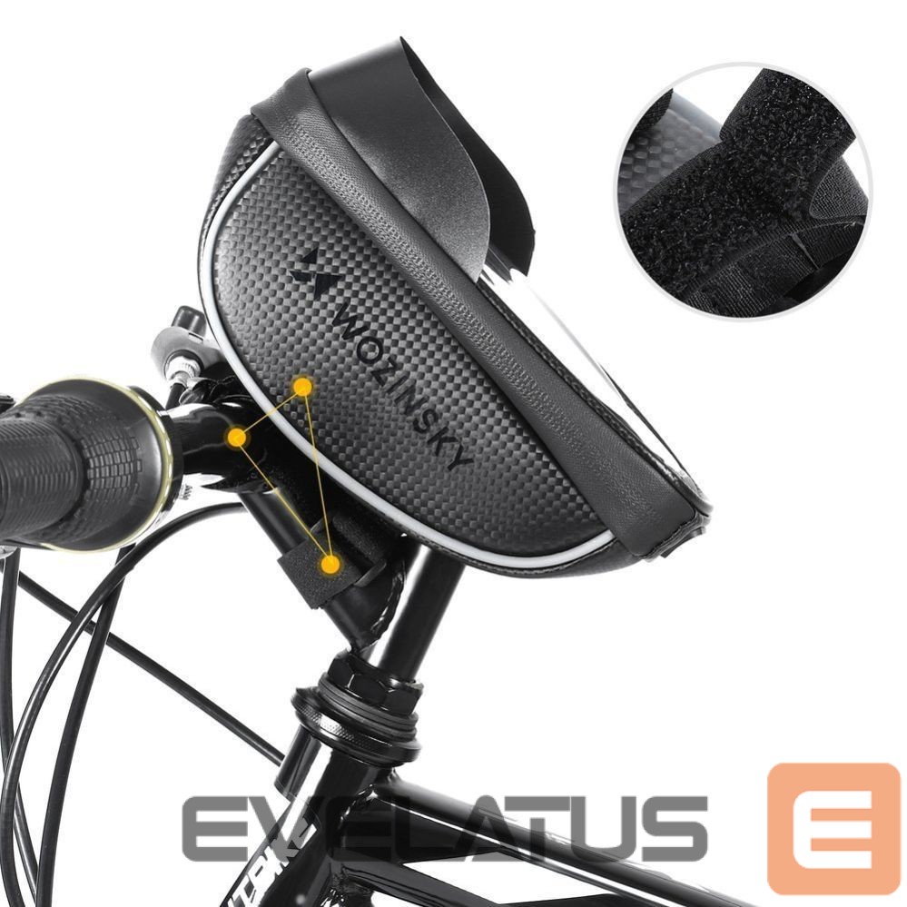 Want to transport your belongings safely and keep your phone within easy reach? The Wozinsky WBB16BK handlebar bike bag has a built-in phone case . The protective film protects your smartphone from rain, dirt, and dust . The bag has a modern design and solid construction . It boasts a strong, waterproof zipper and durable material . It's easy to put on and take off – the Velcro strap system is incredibly easy to use.