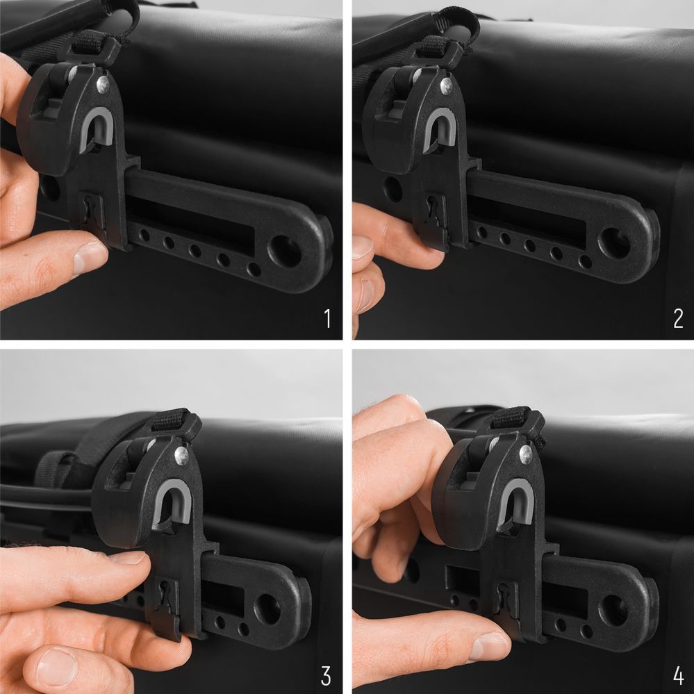 Thanks to its adjustable buckles, the Wozinsky bag is compatible with many bike racks . To mount it on your rack, simply tighten the buckles and lock the lower swivel bracket. This attachment ensures the bag is held securely and allows for quick and easy removal from the bike.