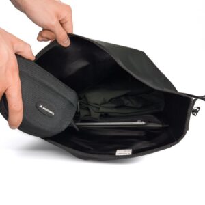 This trunk bag has a very large capacity – a whopping 25 liters ! You can fit a lot of your belongings in it: clothes, a bike helmet, a water bottle, but also electronics and bike repair equipment. Inside the trunk bag, there's a pocket that makes it easy to find specific items .