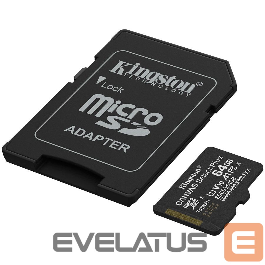 Cable Kingston Kingston 64GB microSDXC Canvas Select Plus Gen3 100MB/s A1 Card + Adapter
