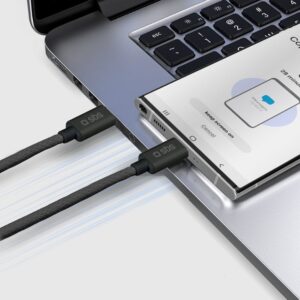 The cable allows for simultaneous charging and file transfer, making it an extremely functional addition to your everyday USB-C device use.