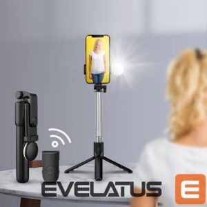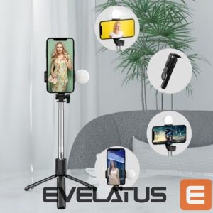 Camera accessory Hurtel Selfie stick WR1YXS telescopic tripod 0.71m with round lamp – black