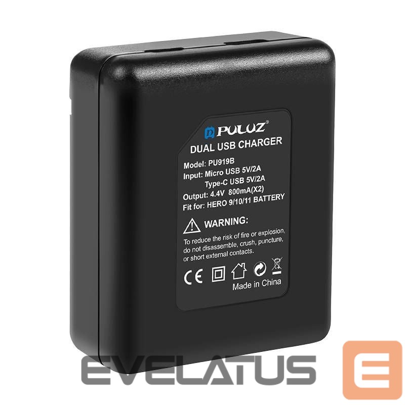 Camera accessory Puller 2-slot charger Puluz PU919B for GoPro Hero 9/10/11/12