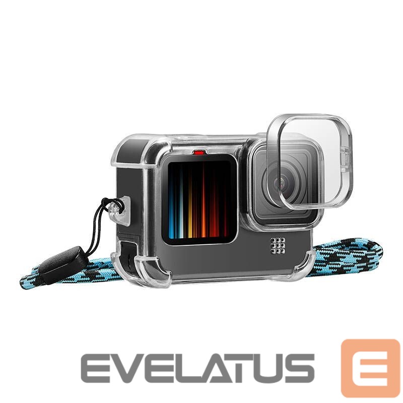 The PULUZ Case with Lens Cover and Neck Strap is the perfect solution for any GoPro HERO9 / 10 / 11 / 12 user concerned about the safety of their equipment and comfort of use. It effectively protects the camera from scratches, dirt, and thanks to special air cushions on the four corners, it increases the camera’s resistance to falls and collisions, which is extremely important during dynamic activities. The integrated lens cover provides additional protection, safeguarding the most important part of your camera from damage. All buttons and ports are easily accessible, so you can quickly and conveniently use your camera without having to remove the case. You’ll also find a neck strap included, the length of which can be easily adjusted. The strap can also be wrapped around your arm and used as a wrist strap for added convenience and versatility.