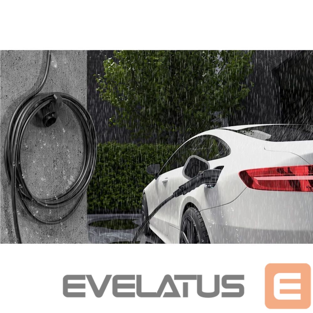 Works with all Type 2 (IEC 62196-2) plugs and Mode 3 charging cables, up to 32A and 7.5 meters in length.