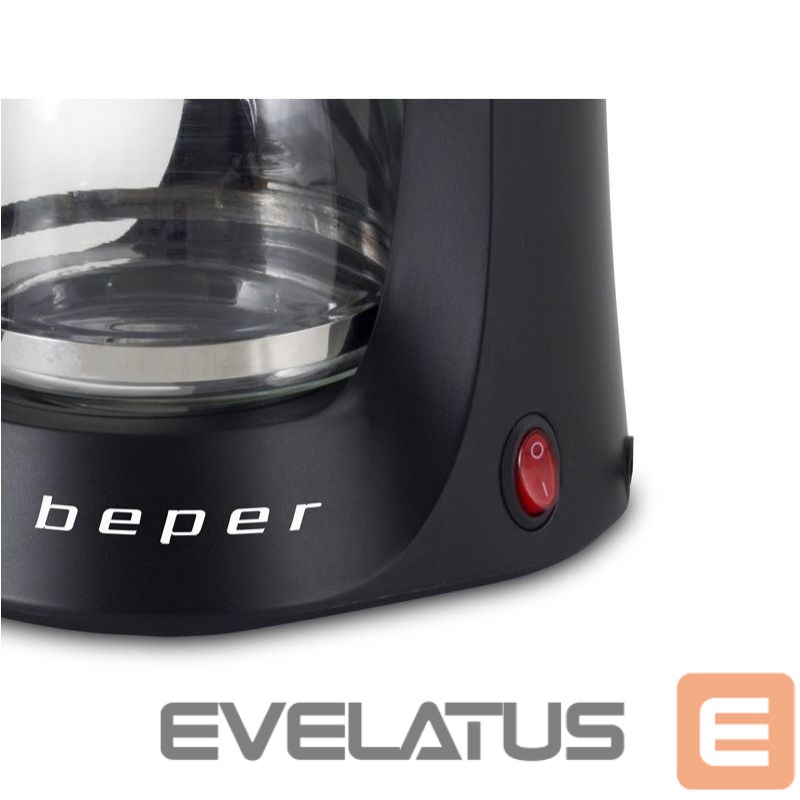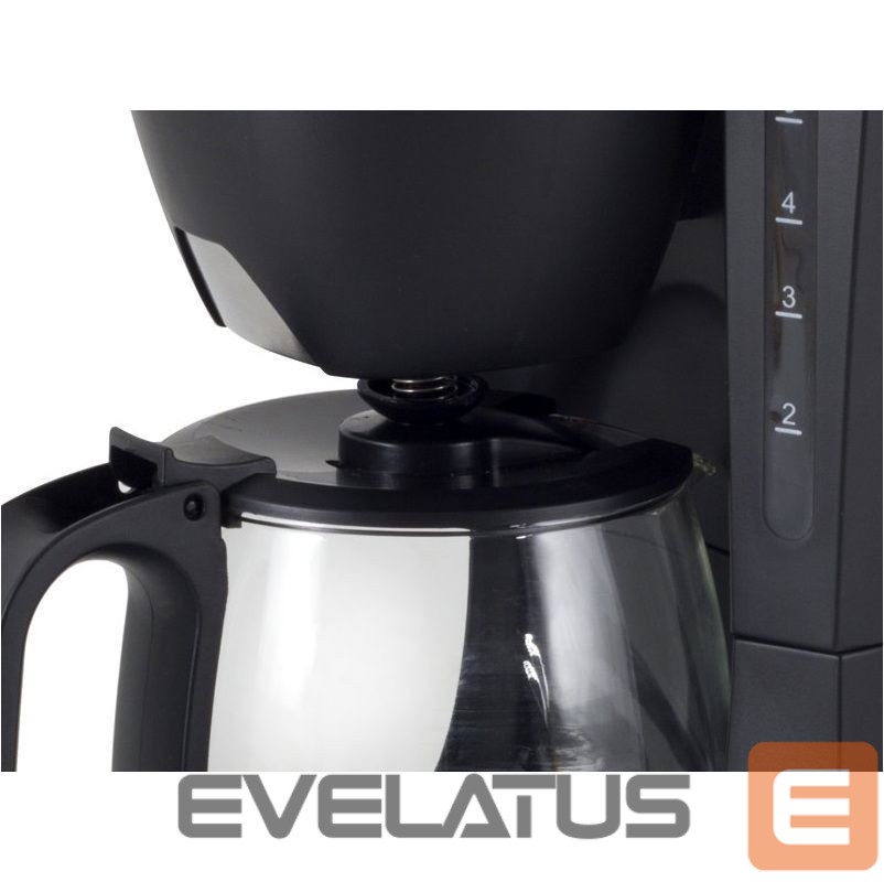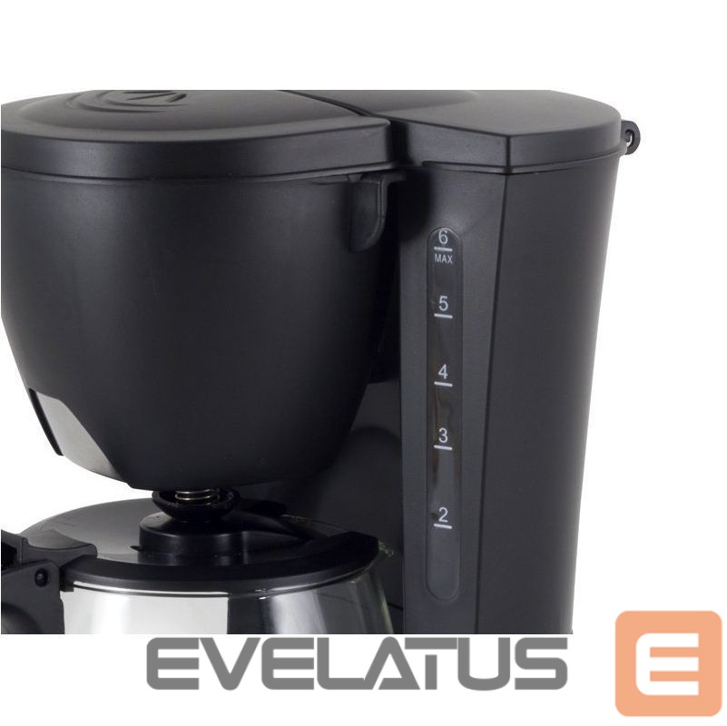 Drip coffee maker with a 600ml glass pitcher that is suitable for 4 to 6 cups of coffee, a removable and washable filter and a waterlevel indicator. The appliance is equipped with an anti-drop feature and a keepwarm plate to keep coffee warm.