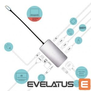I-TEC USB-C Metal Dock 1xHDMI 1xVGA 1xSD+1xmicroSD Card reader 1xGLAN 1xAudio/Mic 3xUSB 3.1 1xUSB-C Data 1xUSB-C PD + Charger 100W