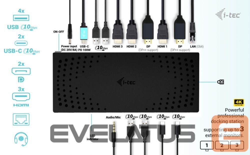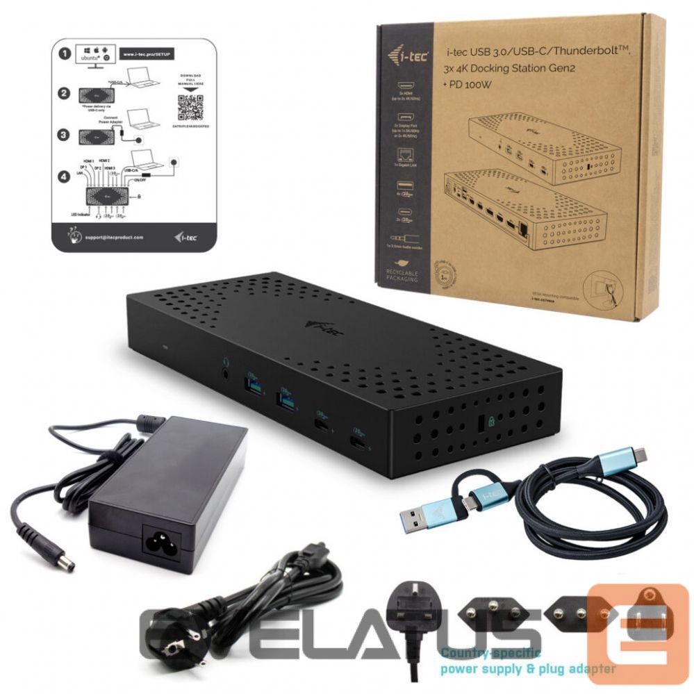 I-TEC USB 3.0 USB-C Thunderbolt 3x 4K Docking Station Gen 2 + Power Delivery 100W