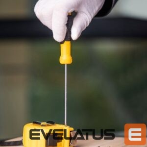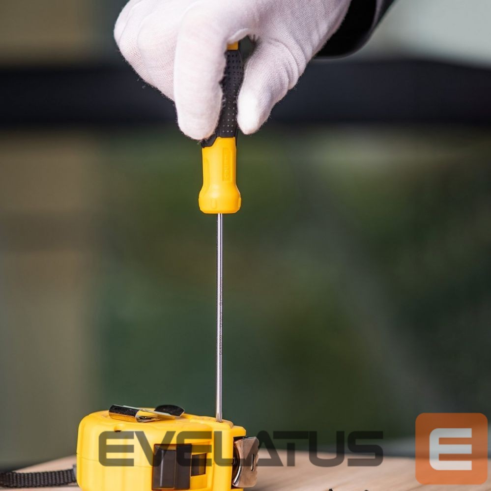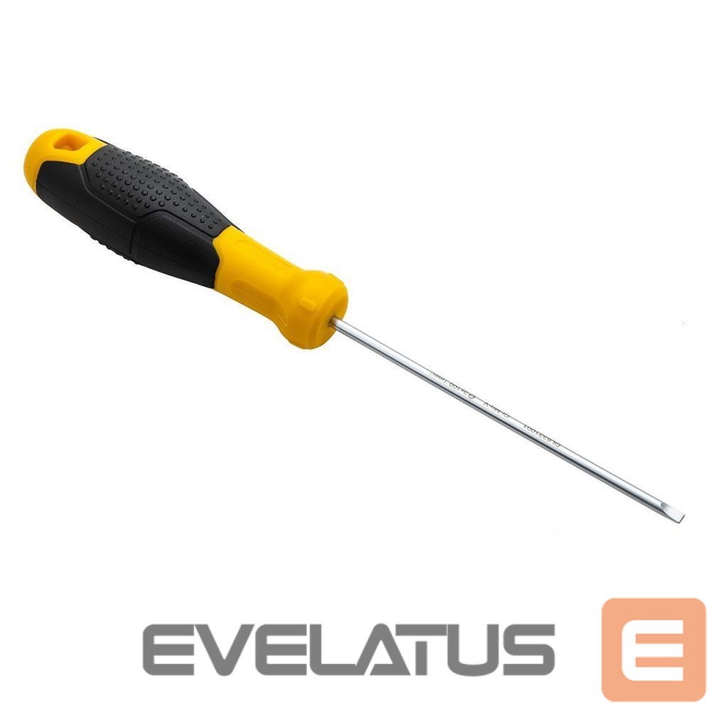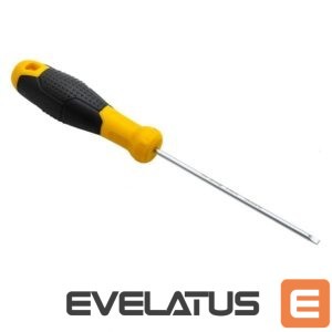 Convenient to use, durable slotted screwdriver 3x100mm in yellow. The handle of the product is made of high-quality plastic. It has a practical hole that allows you to hang the tool, for example on a tool board. The screwdriver is also equipped with a magnetic tip that makes your work much easier.
