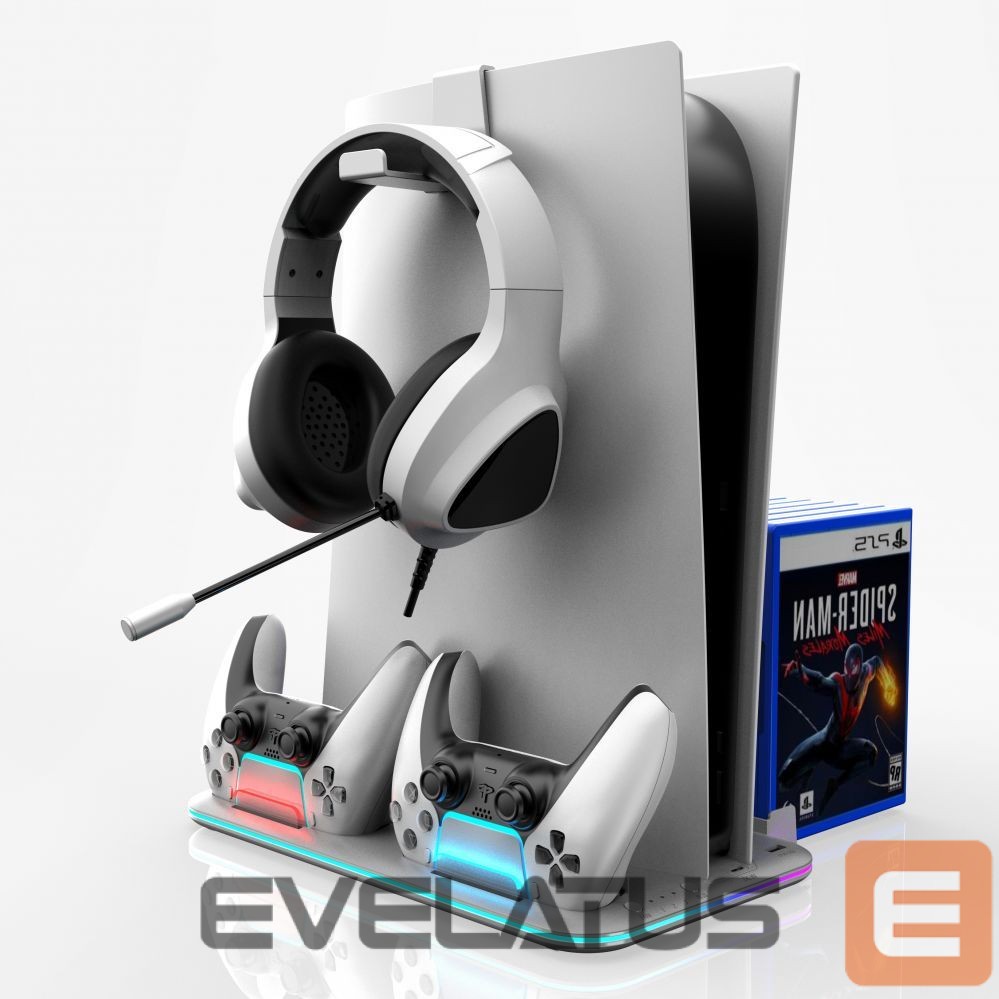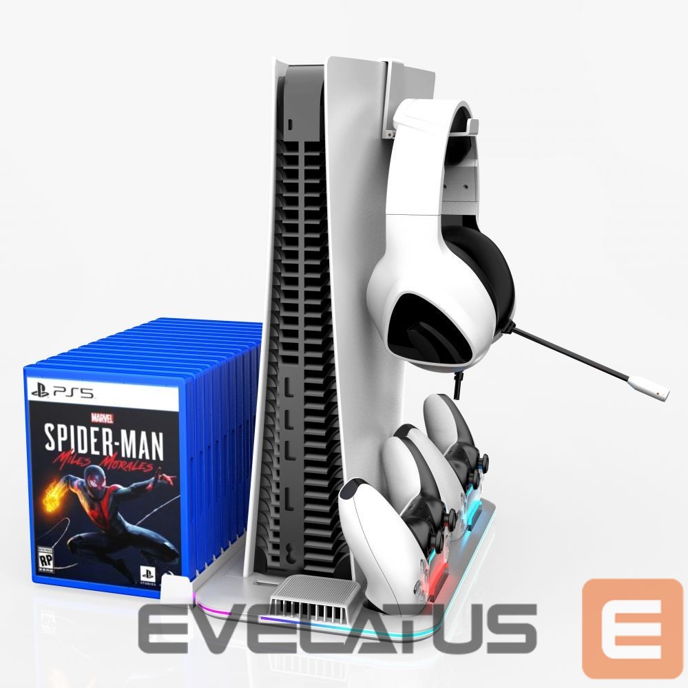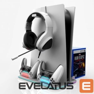 Controller iLike DZ504 Slim Multi Dock Station for Play Station 5 PS5 Controllers with Cooling fas & RGB Black