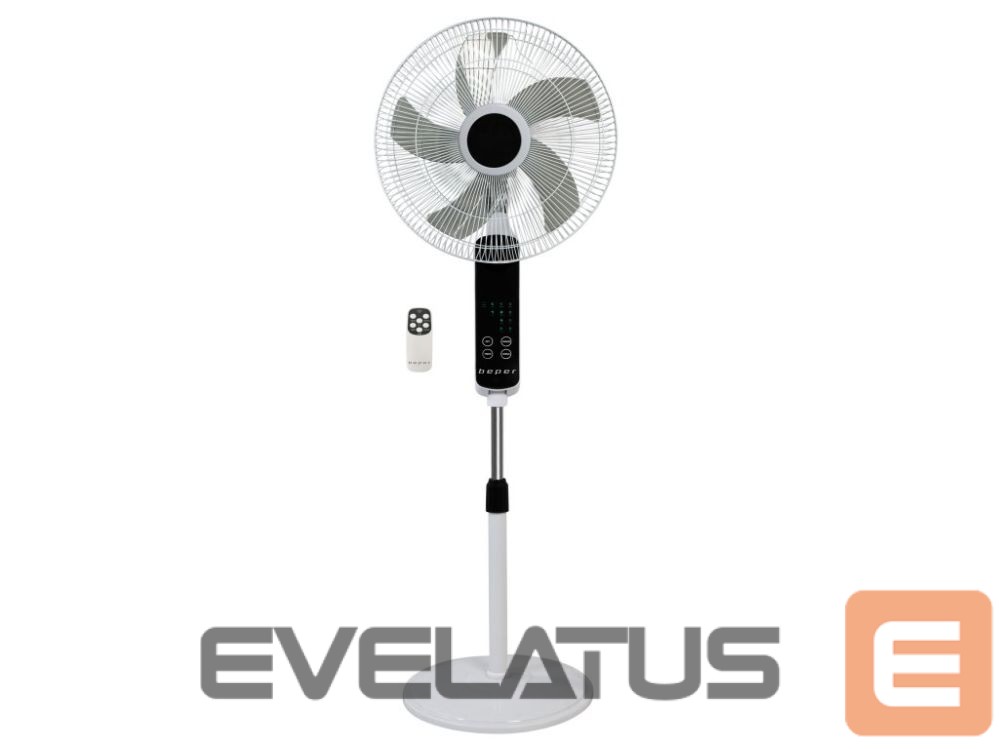 Floor standing fan with touch screen equipped with 5 blades in ABS protected by a metal grill Ø 45cm. The touch panel allows the selection of the 3 speeds, the normal, breeze or night operating mode, the selection of the oscillating function and the timer programming up to 7.5 hours. With adjustable height up to 130cm and round base to ensure maximum stability. Practical remote control included.