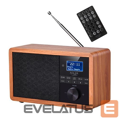Interactive solution Adler Radio DAB+ Bluetooth AD 1184 Display LCD, Black/Brown, Alarm function