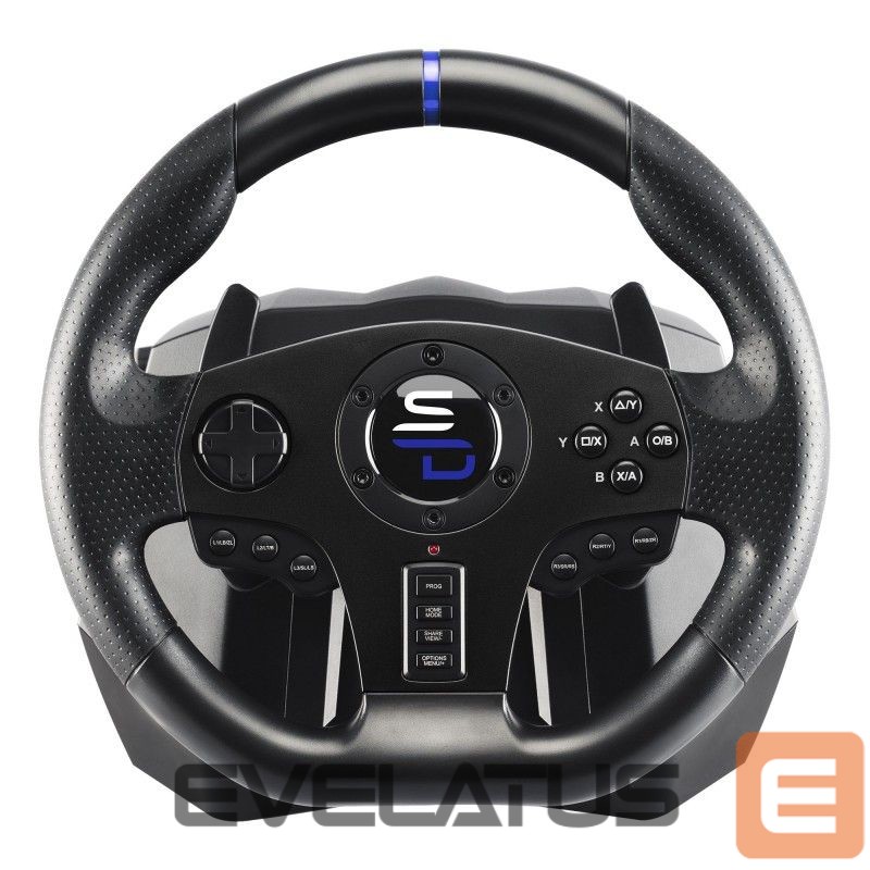 A radical steering wheel with a sporty, sleek design that provides an ultra-realistic, tenfold driving experience.