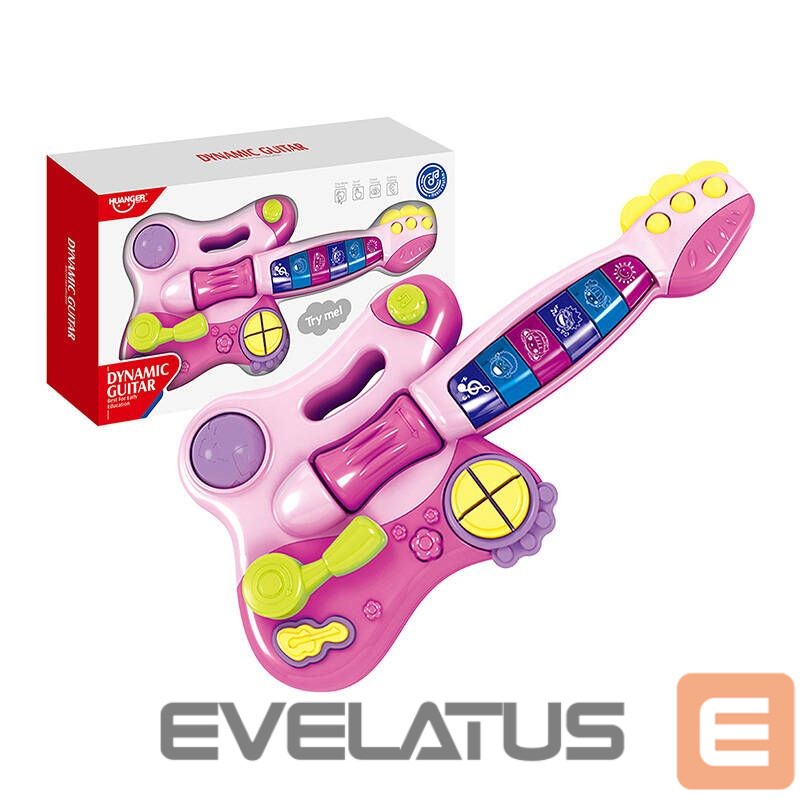 The Huanger Interactive Musical Guitar is a charming toy resembling a real musical instrument that will introduce your child to the fascinating world of melodies and rhythms, while developing manual and cognitive skills. It offers a rich array of functions that will delight any little artist. Equipped with 9 buttons that trigger a variety of melodies and sounds, the toy offers 3 music modes – pop, rock and blues. Illuminated buttons, a movable cylinder and a pink song-changing lever provide dynamic fun, while an extendable ball acts as a rattle.