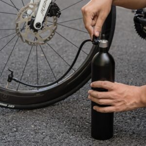 The Rockbros high-pressure reservoir delivers a powerful pulse of air to instantly seal and seat the tyre without the need for a compressor.