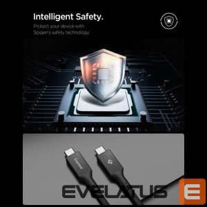 The Spigen Essential EB10015CC is a universal Type-C cable supporting Power Delivery charging up to 100W. This makes it suitable for smartphones and tablets, as well as MacBook and Galaxy Book series laptops. The cable is compatible with a wide range of Type-C devices. Its 150 cm length ensures convenient use in various situations.
