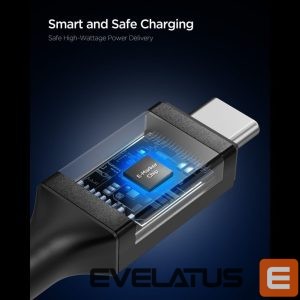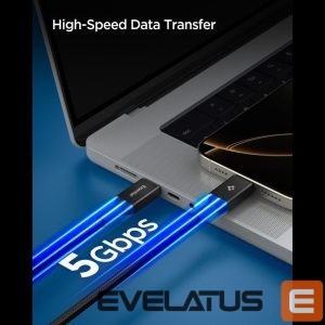 The built-in E-Marker chip manages safe current flow, automatically regulating output power and protecting against overheating, overvoltage, and overcurrent. Full compatibility with USB Power Delivery allows for fast device charging. The cable also supports USB 3.2 Gen1 data transfer rates of up to 5 Gb/s, enabling smooth transfer of files, photos, and 4K video.