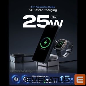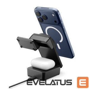 Spigen Essential Qi2.2 25W 3in1 Magnetic MagSafe Wireless Charger is an advanced 3-in-1 charging station that supports the Qi2.2 standard with an output power of up to 25W. It allows you to simultaneously charge your smartphone, wireless headphones, and smartwatch from one device.