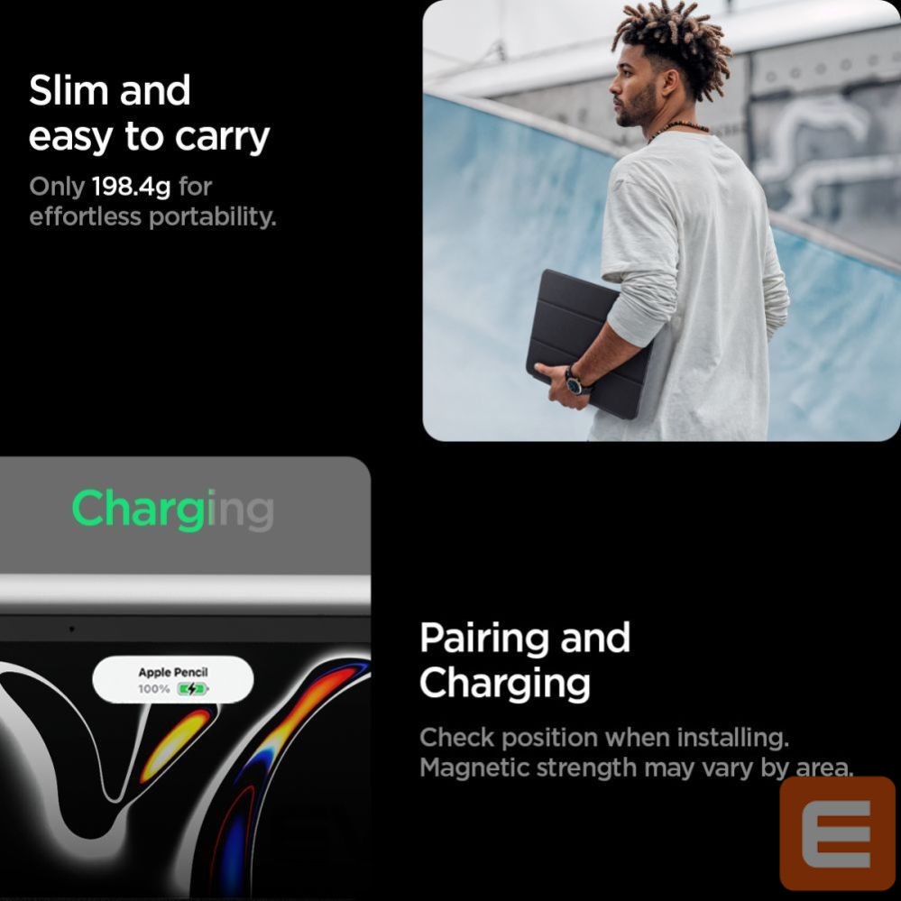 The foldable cover allows you to position the tablet in two stable positions, perfect for writing, working with a stylus, reading, or watching movies. The case is fully compatible with the Apple Pencil's magnetic pairing and wireless charging features. Precise cutouts provide full access to all ports and buttons.