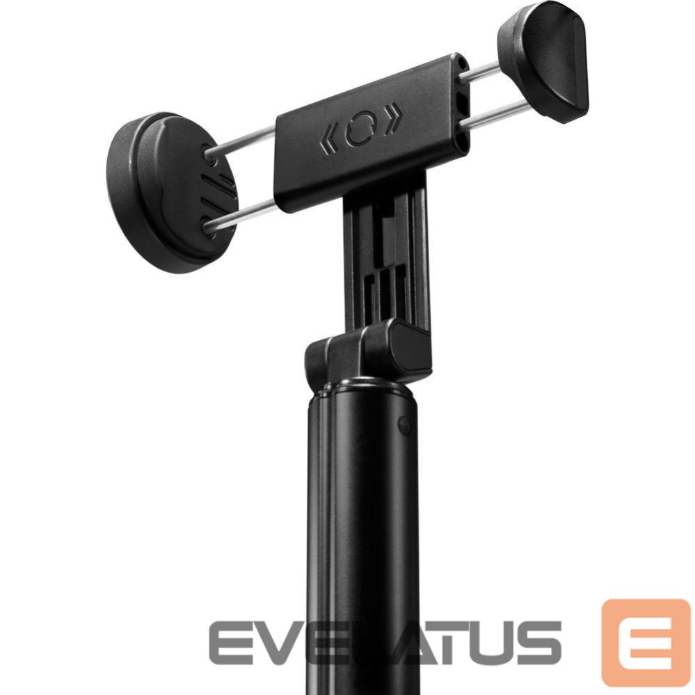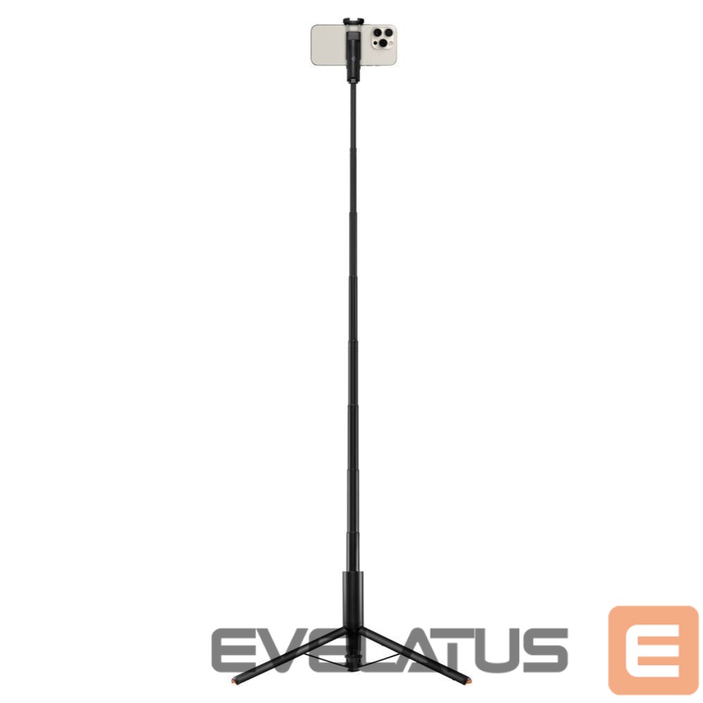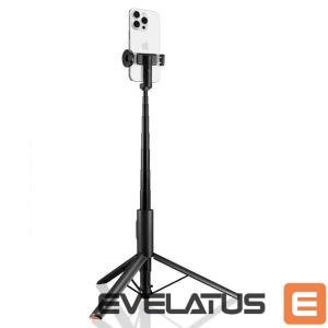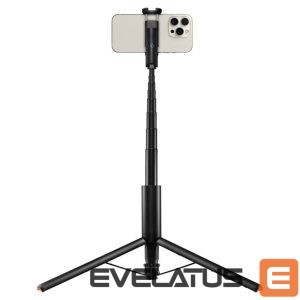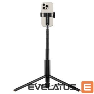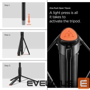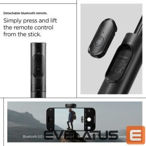 Thanks to the detachable Bluetooth remote control with included battery, you can conveniently take photos remotely, without having to touch the device. An innovative feature is the automatically extending tripod – the legs extend automatically when the stick is gently dropped on the ground, making it easy to quickly switch from selfie to tripod mode.