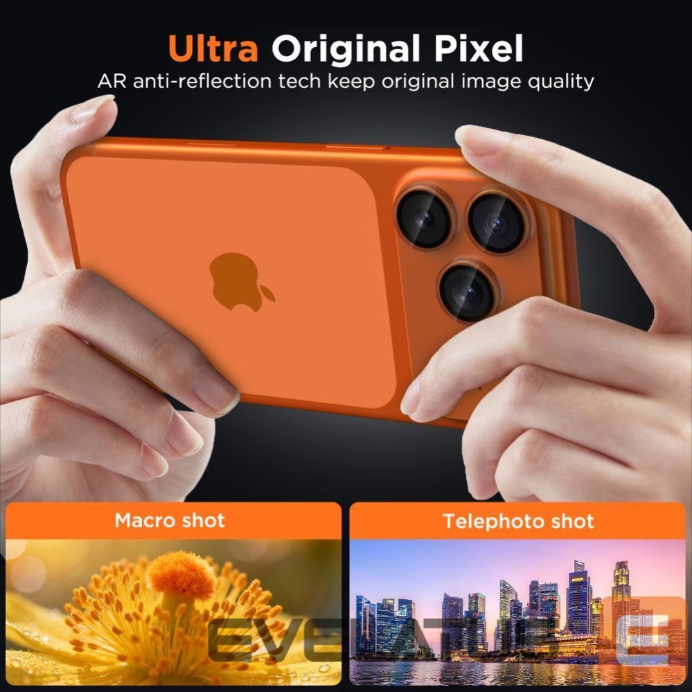 Hybrid glass combines the advantages of hard tempered glass with the flexibility of polymers, creating a solid protective barrier against impacts and contact with various surfaces. The cover covers each lens, protecting it from scratches from keys, sand, coins, and other sharp objects. Thanks to its precise craftsmanship and thin construction, it does not affect the camera's performance, and the quality of photos and videos remains the same as without the cover.