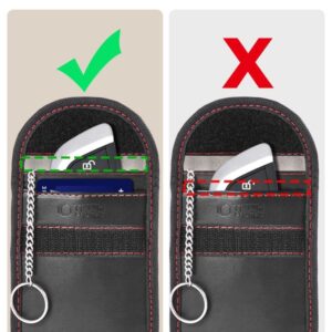 Inside, a double layer of RF protection effectively blocks RFID, EMF, Bluetooth, Wi-Fi, GPS, and other radio signals, ensuring your keys are fully protected from remote copying or reading attempts. This means you can rest assured that your car remains safe even when in close proximity to potential threats.