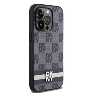 Each case is decorated with a unique motif of the initials of the exclusive DKNY fashion house, which form an unusual check pattern. This pattern is very characteristic and attracts attention thanks to its unique design. An additional decoration is wide stripes in the color of the cover, which achieves harmony and elegance. The whole is topped with a metal DKNY logo, which emphasizes the prestige and authenticity of the collection.