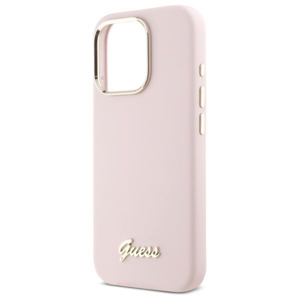 Other Phone Accessory Guess Guess Silicone Script Metal Logo & Frame iPhone 16 Pro Case – Pink
