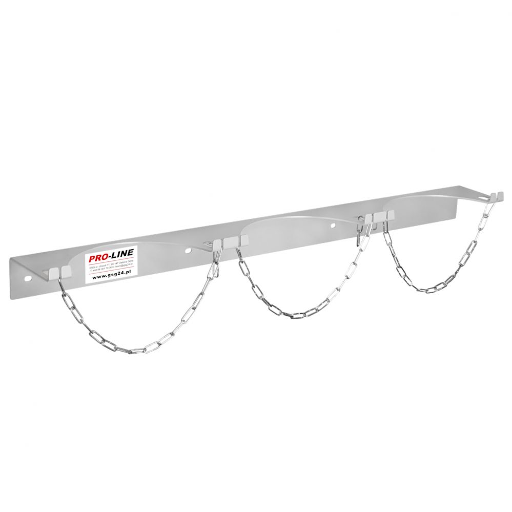 The PRO-LINE wall holder for 3 gas cylinders is ideal for safe storage of cylinders in a vertical position. The cylinder mounting holder is equipped with a chain for security . Easy wall mounting with screws or screws.