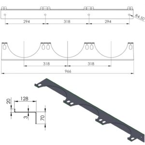 • – Dimensions (LxWxH) – 965 x 125 x 90 mm