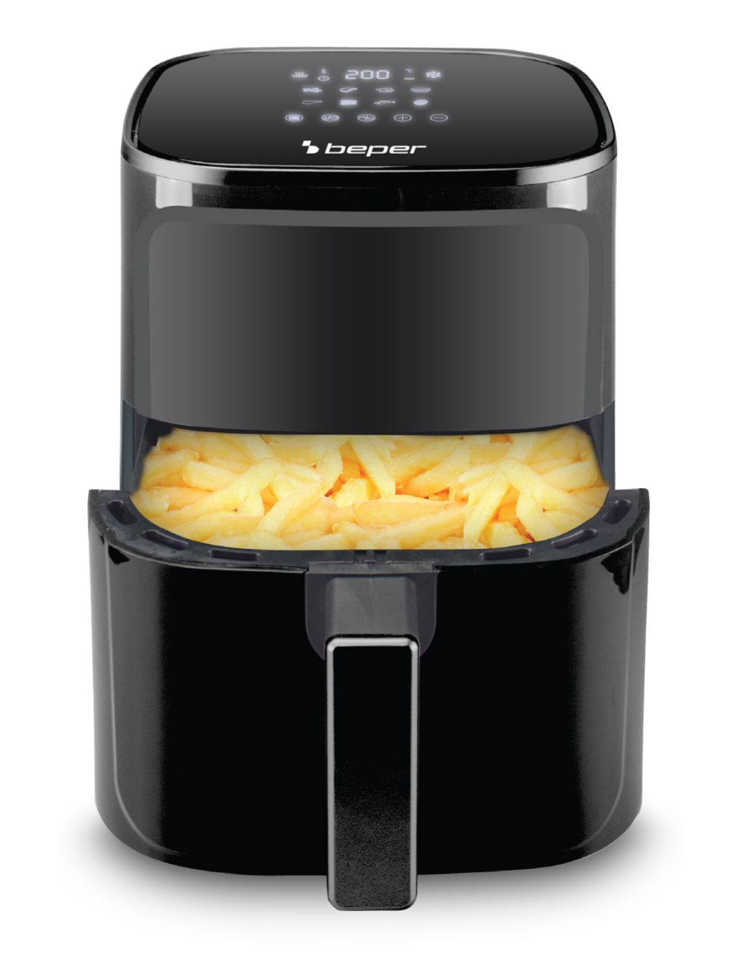 Hot air fryer is the healthiest alternative to traditional frying as it allows frying without or with very little oil. Also ideal for roasting, baking and grilling. Digital operating panel with sensitive touch sensor to choose from 8 pre-set programmes, to adjust temperatures from 80 to 200°C, and to set the timer for up to 60 minutes. 5 litre capacity container and removable non-stick aluminium grid for easy cleaning. Overheating protection.