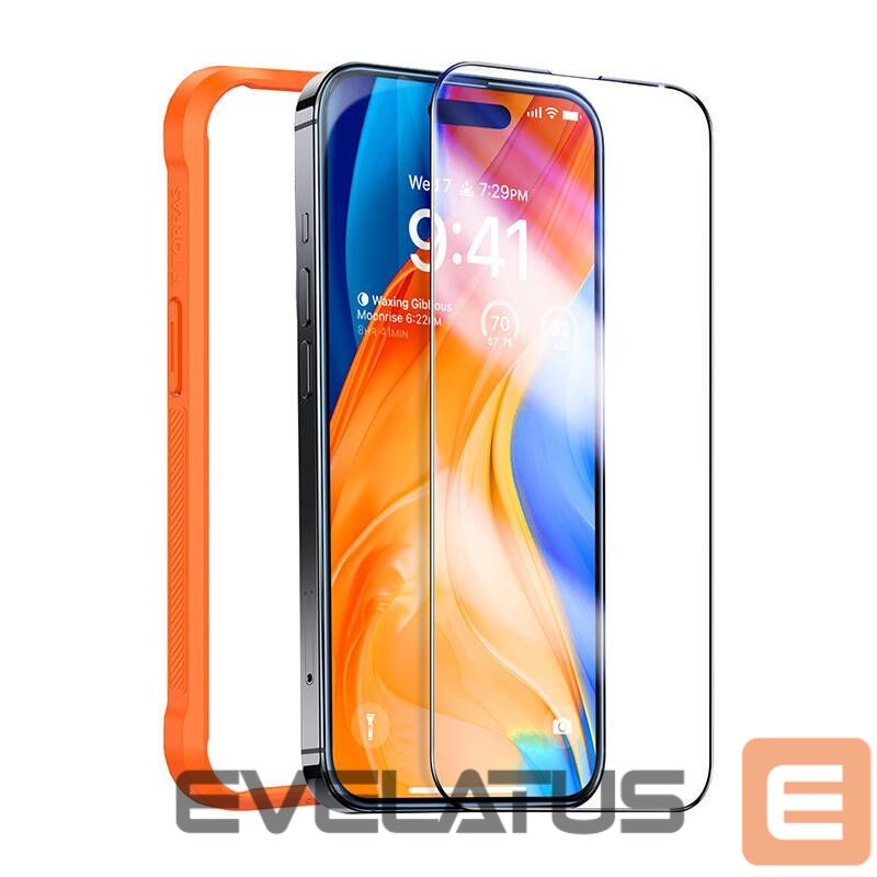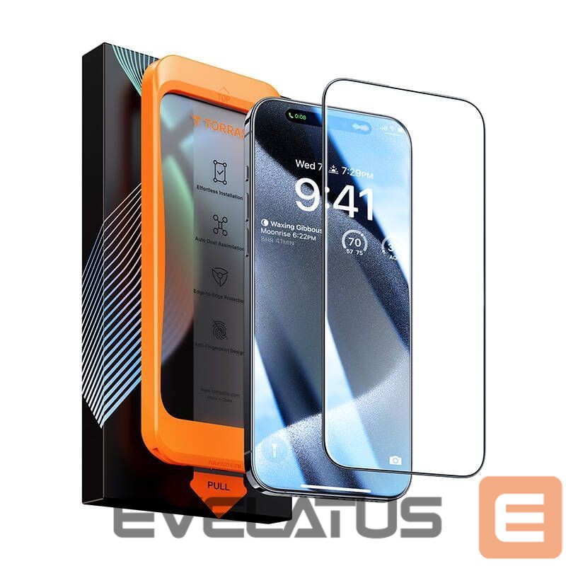 Torras InstaII Master is a tempered glass designed for the iPhone 15, which provides the highest level of screen protection. The use of triple ion exchange technology has made it possible to guarantee up to 10 times higher impact resistance compared to standard shields. The accessory also maintains the highest display quality, and you won’t have any difficulties installing it.