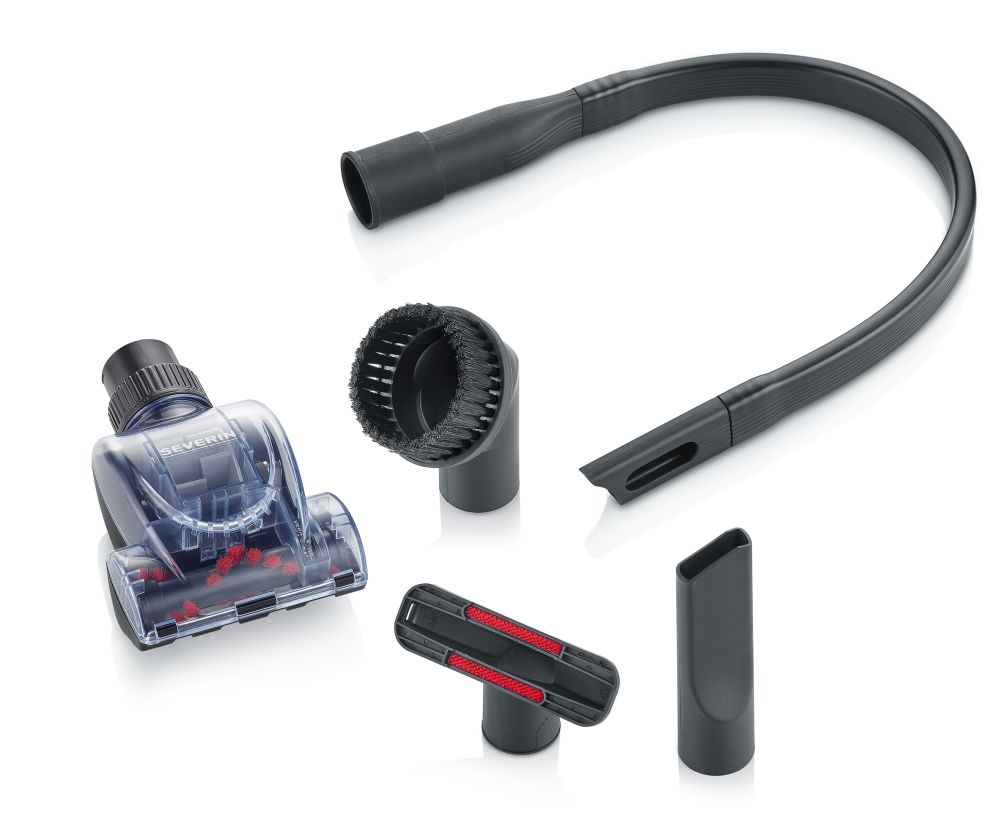 Rinkinyje yra: mini turbo šepetys, ilgas lankstus plyšių antgalis, apmušalų antgalis, mažas plyšių antgalis ir baldų šepetys.
