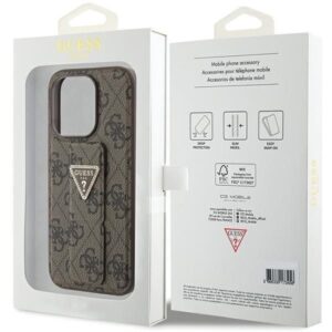 Aizmugurējais vāciņš Guess Guess Grip Stand 4G Triangle Strass case for iPhone 15 Pro – brown