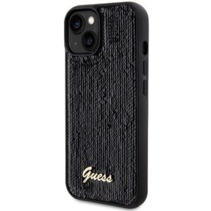 Aizmugurējais vāciņš Guess Guess Sequin Script Metal case for iPhone 14 / 15 / 13 – black
