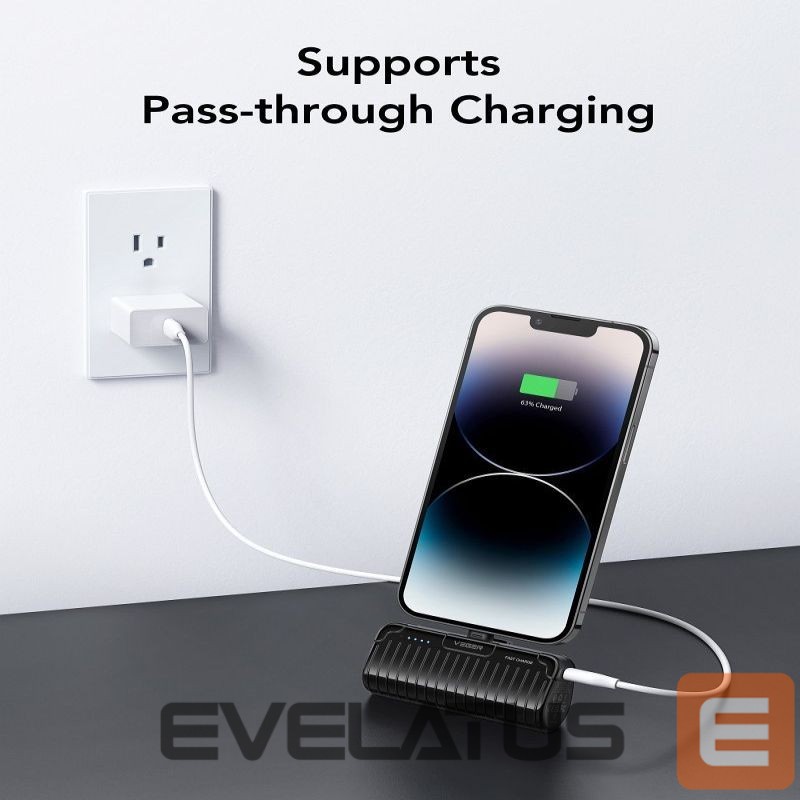 Ārējais akumulators Veger Powerbank Veger PlugOn (W0558P) PD QC3.0 2,4A 20W 5000 mAh with a built-in connector Lightning black