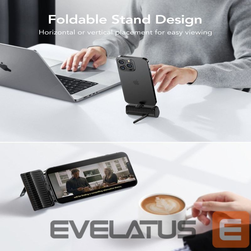 The foldable stand supports the smartphone vertically and horizontally at a 68-degree angle, allowing you to use the smartphone while charging.