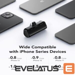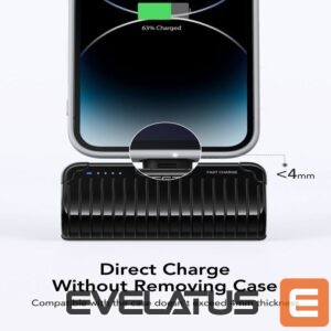 The power bank has a built-in Lightning connector. It connects directly to the device, so you don’t need to carry an additional cable with you.