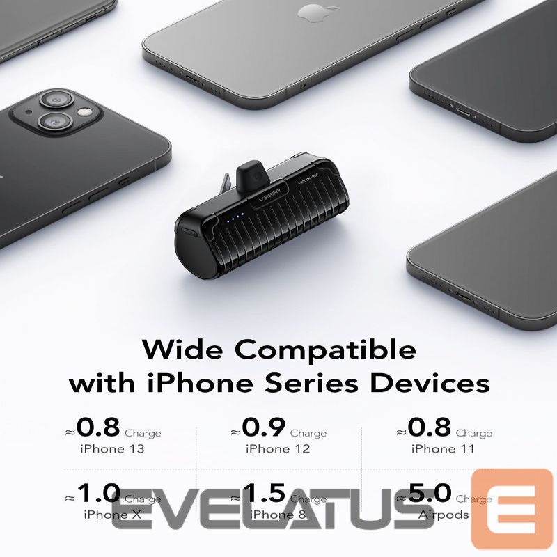 The compact Veger PlugOn W0558P Power bank with a built-in Lightning connector with a capacity of 5,000 mAh guarantees fast charging anywhere, anytime.
