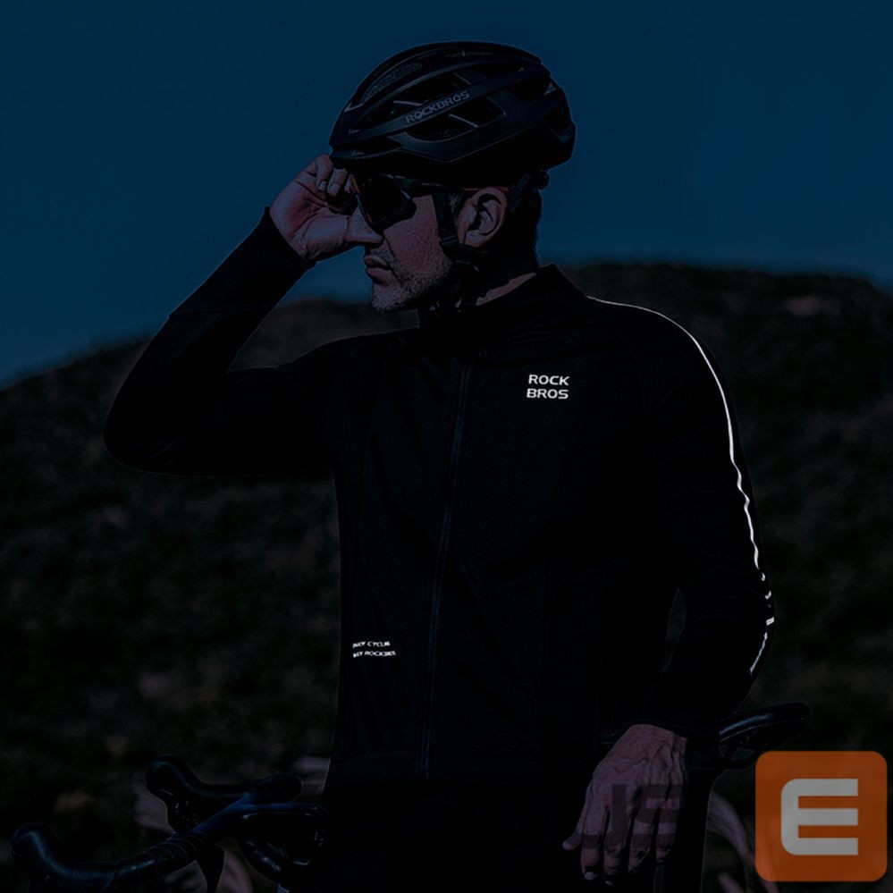 Man at night wearing a Rockbros 15400002005 cycling jacket