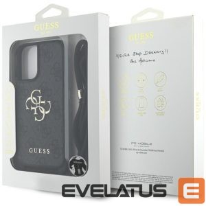 Citas preces Guess Guess 4G Big Logo Cord Stap Crossbody Case for iPhone 16 Plus Black