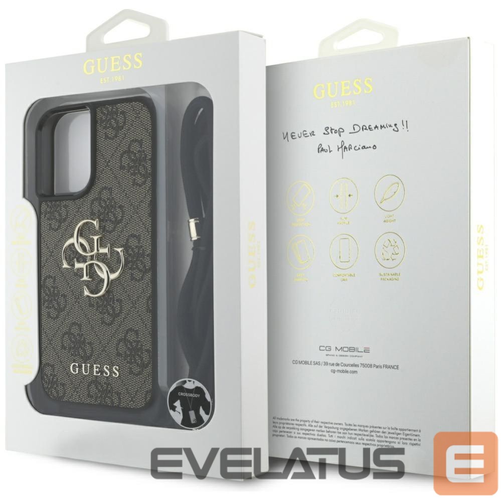 Citas preces Guess Guess 4G Big Logo Cord Stap Crossbody Case for iPhone 16 Plus Brown