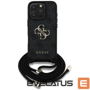 Citas preces Guess Guess 4G Big Logo Cord Stap Crossbody Case for iPhone 16 Pro Max black